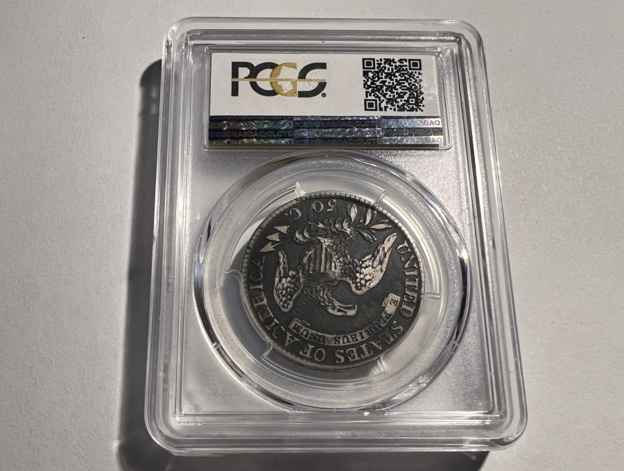 This wonderfully toned 90% silver half-dollar has beautiful patina. It has been graded by PCGS at VF-20.