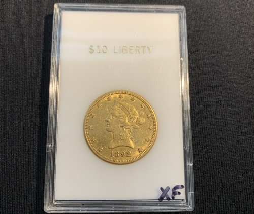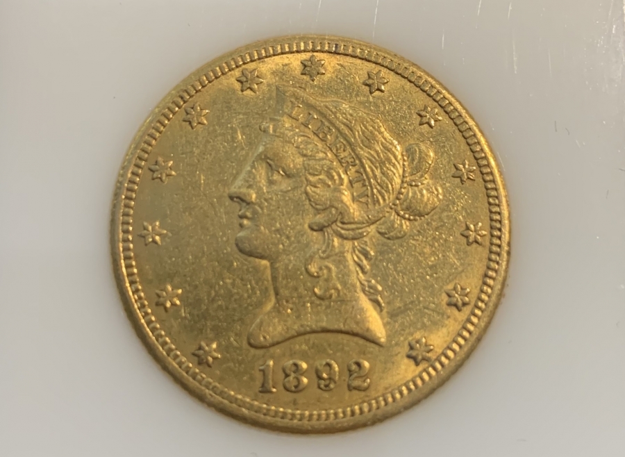 A 1892-O $10 US Liberty Gold Eagle!Only 28,688 of these were minted in New Orleans. 16.7 grams, 90% gold, 10% copper.